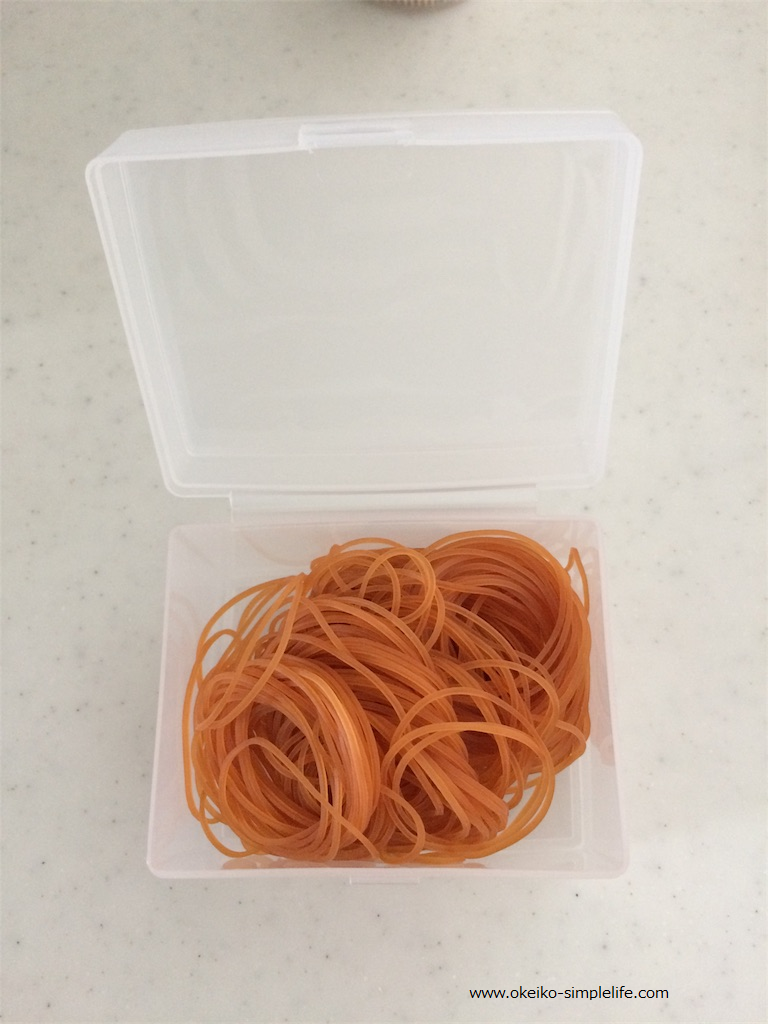 こんな風にいらないタッパーを使用して、輪ゴムを収納していましたが…