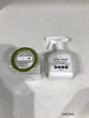 お掃除にはセリアのスプレーボトルを使って、クエン酸水スプレーを作りました(^^)