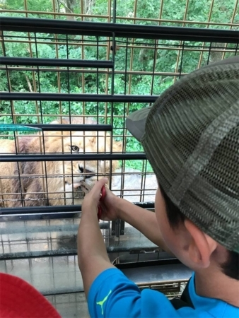 ジャングルバスのエサやりポイントは決まっており、クマ・ライオン・ラクダにエサやりをしました。